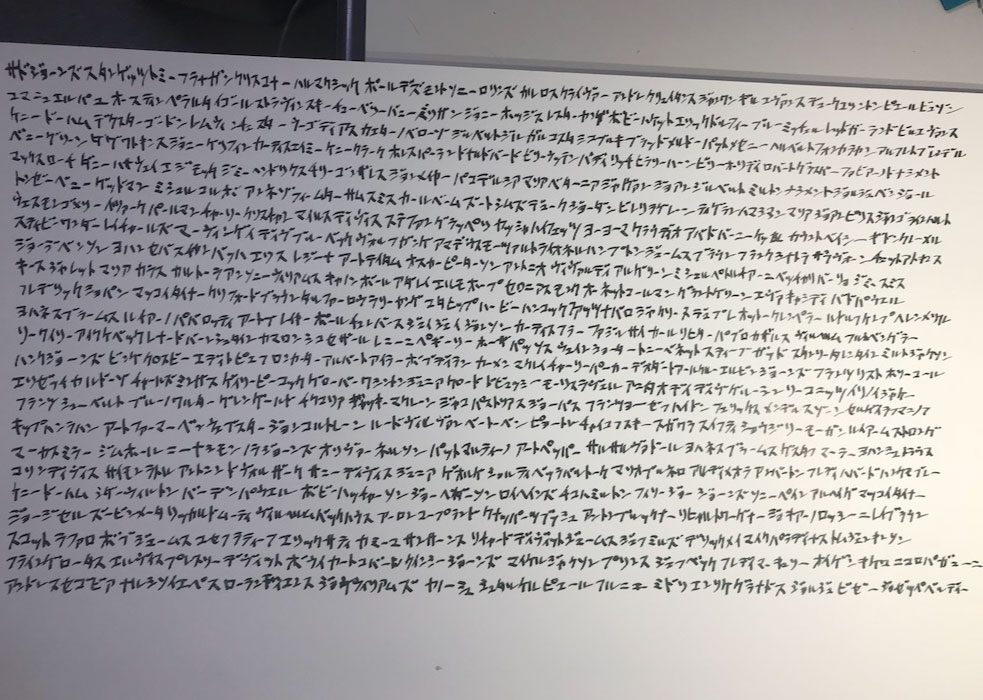 偶像がダメならコーランだ、ということで、とにかく音楽家の名前をびっしり呪文のように書きまくる作戦に切り替えました。