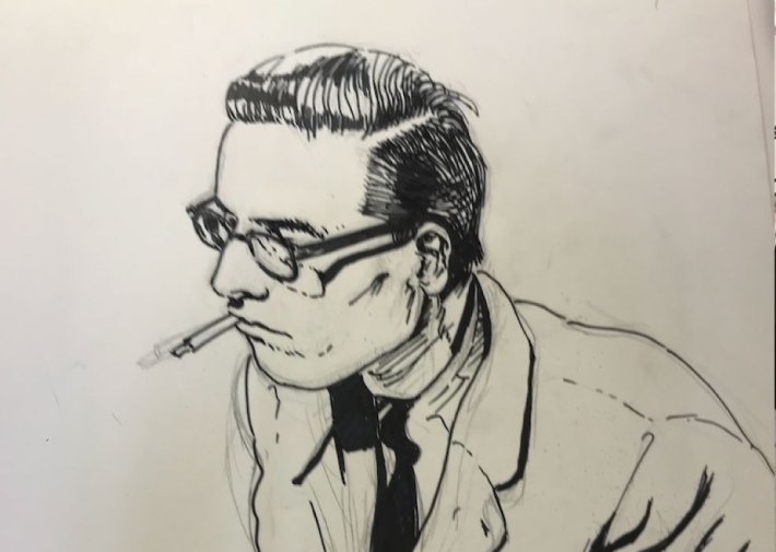 こんな感じの絵を沢山描いて、玉手箱(Westminster)からどわぁ〜んと出てくるようなイメージで作っていたのです。ところが締め切り間際に「あんまり有名人に似てると広告としてまずいんじゃね?」ということになり、まぁ実際そんなにまずくはないのかもしれませんが、ちょっとやめとこうということにしたのです。